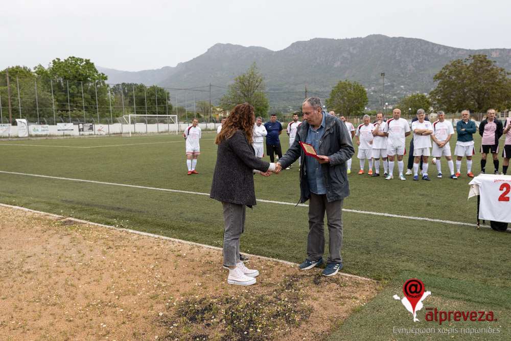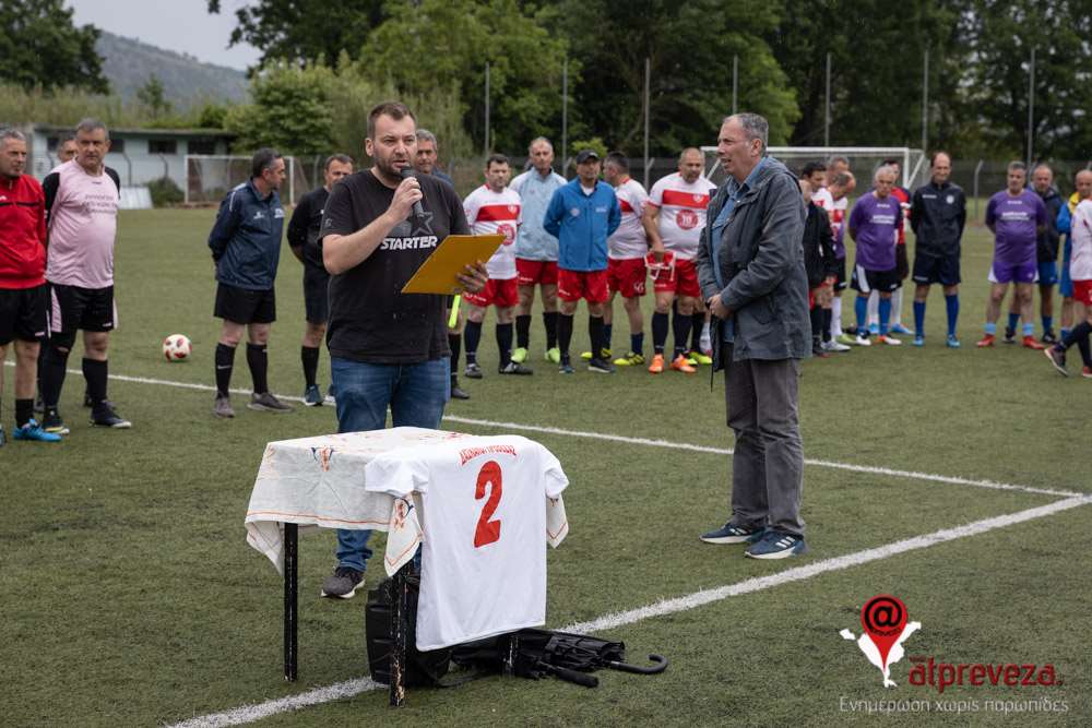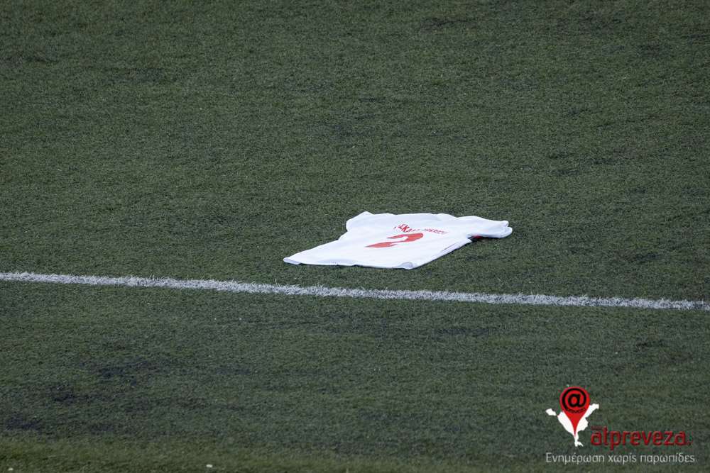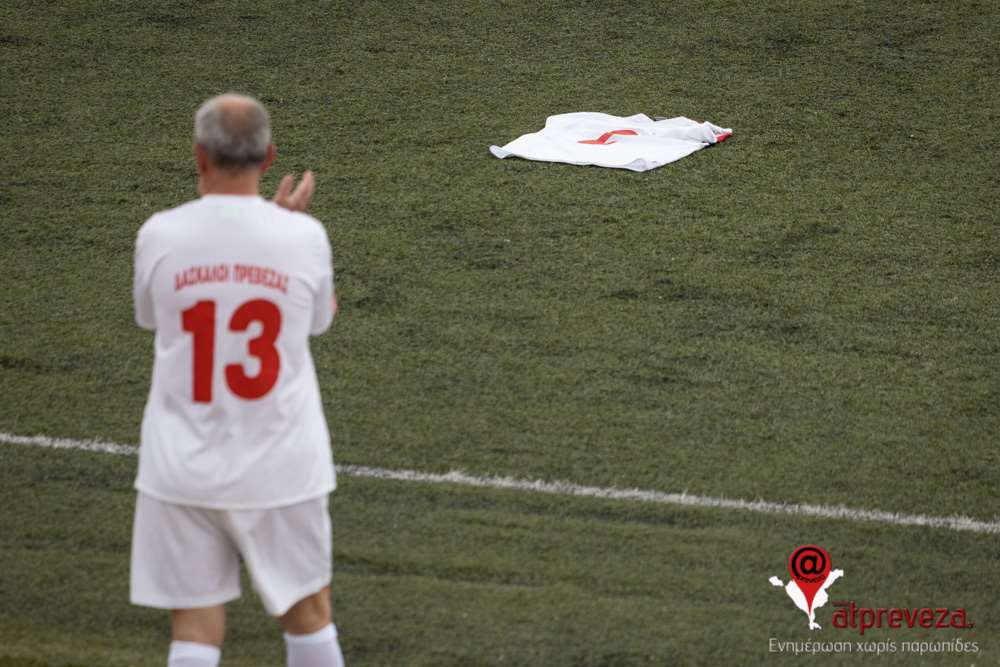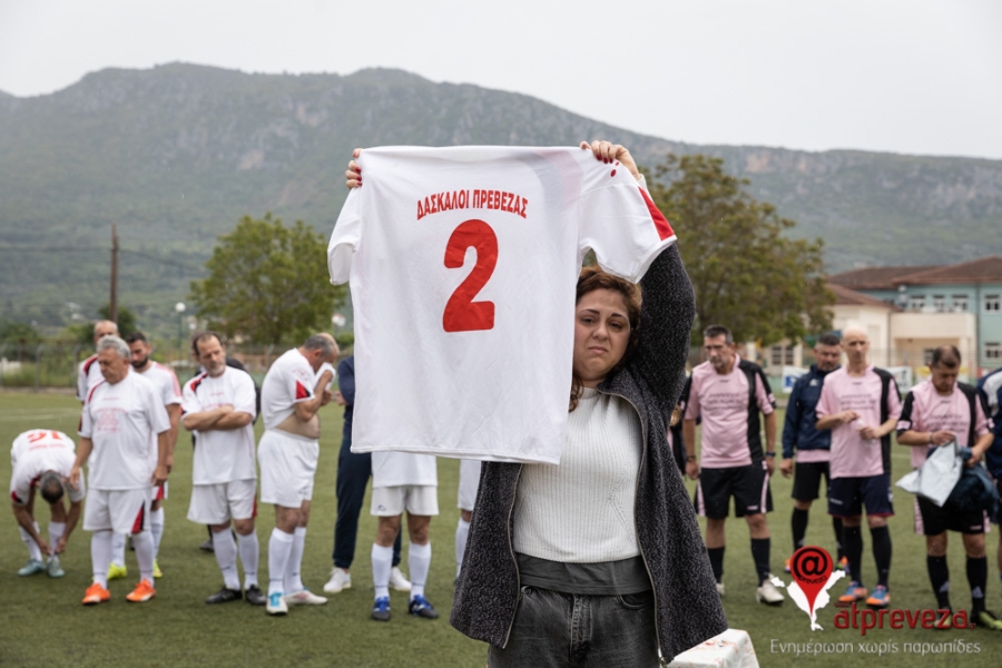 Συγκινητική χειρονομία αποτέλεσε και η παρουσία της φανέλας του με την ομάδα των δασκάλων Πρέβεζας με το νούμερο “2” στον αγωνιστικό χώρο.