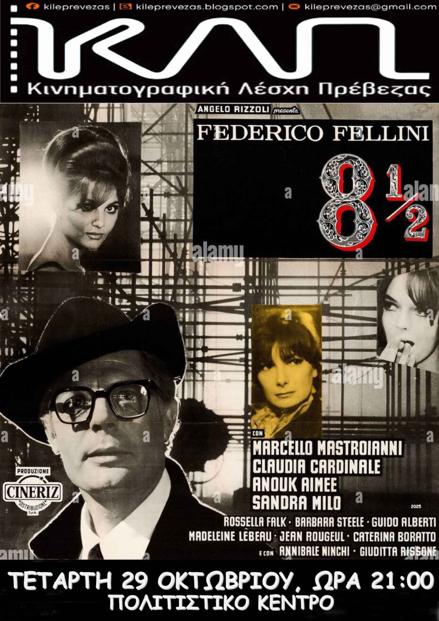 Στο 8½ , την όγδοη ταινία της φιλμογραφίας του, ο Φελίνι αυτοψυχαναλύεται με τον πιο ευφυή, σπαρακτικό και πρωτοποριακό τρόπο, ενώνοντας αναμνήσεις, όνειρα και κινηματογραφικές εικόνες σε ένα ύμνο στη ζωή και το ίδιο το σινεμά.