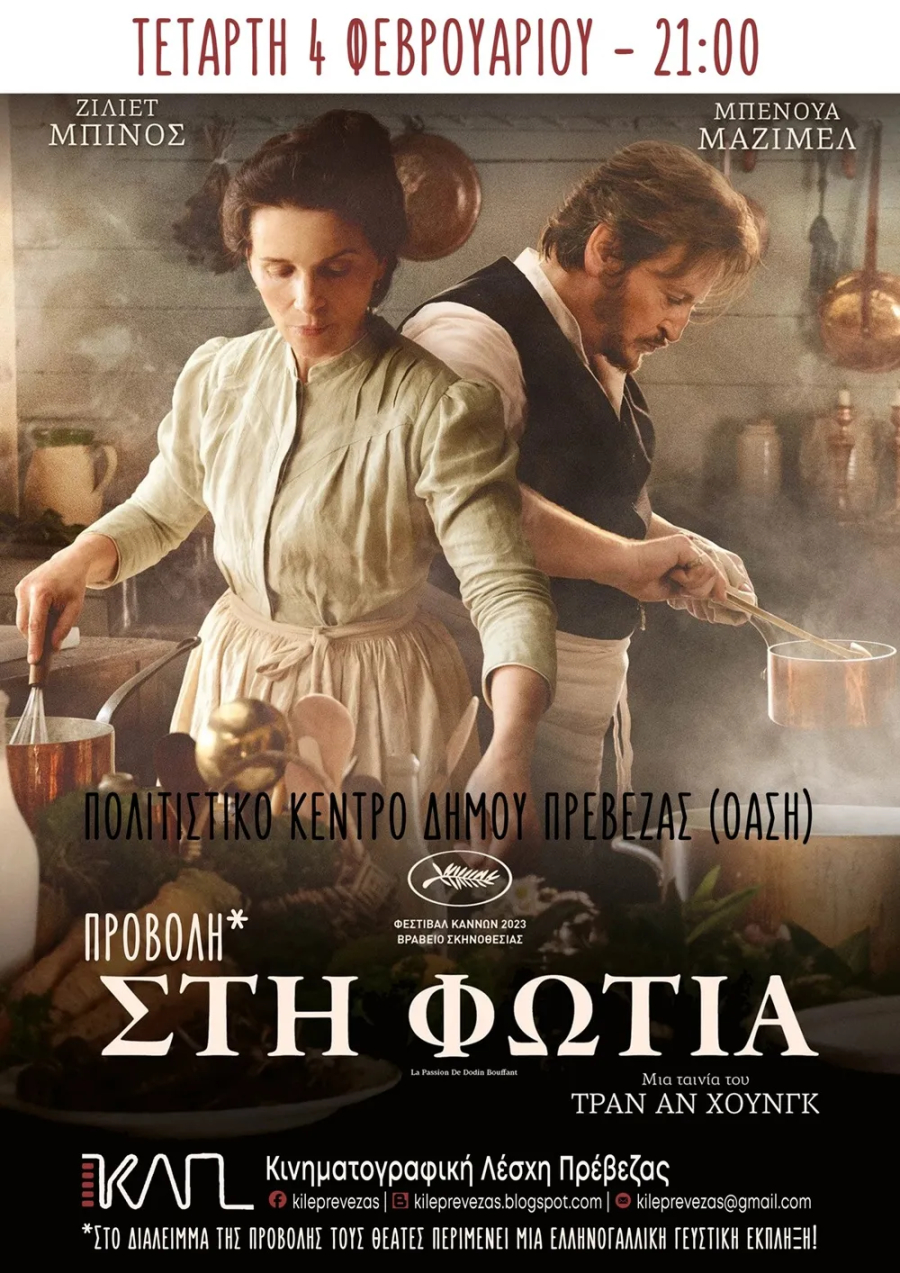 (Στο διάλειμμα της προβολής τους θεατές περιμένει μια ελληνογαλλική γευστική έκπληξη)