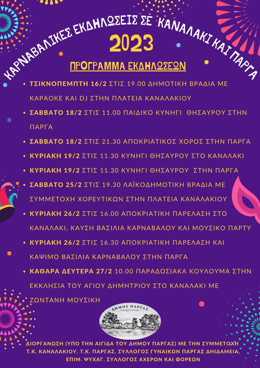 Το πρόγραμμα των αποκριάτικων εκδηλώσεων στο Δήμο Πάργας