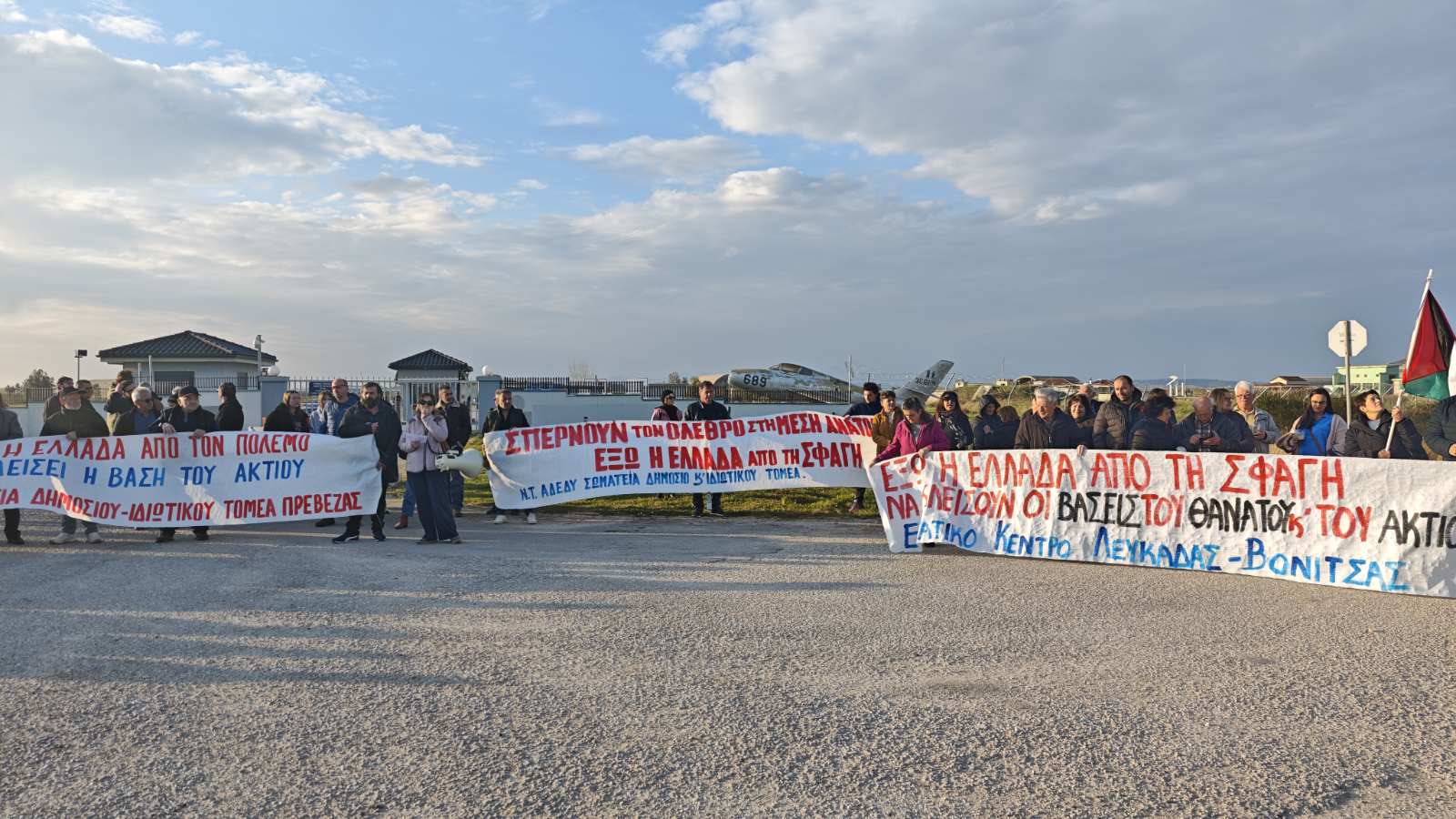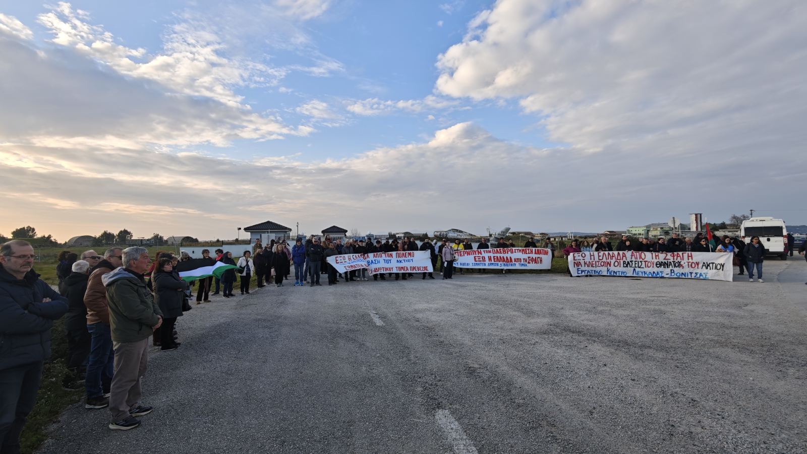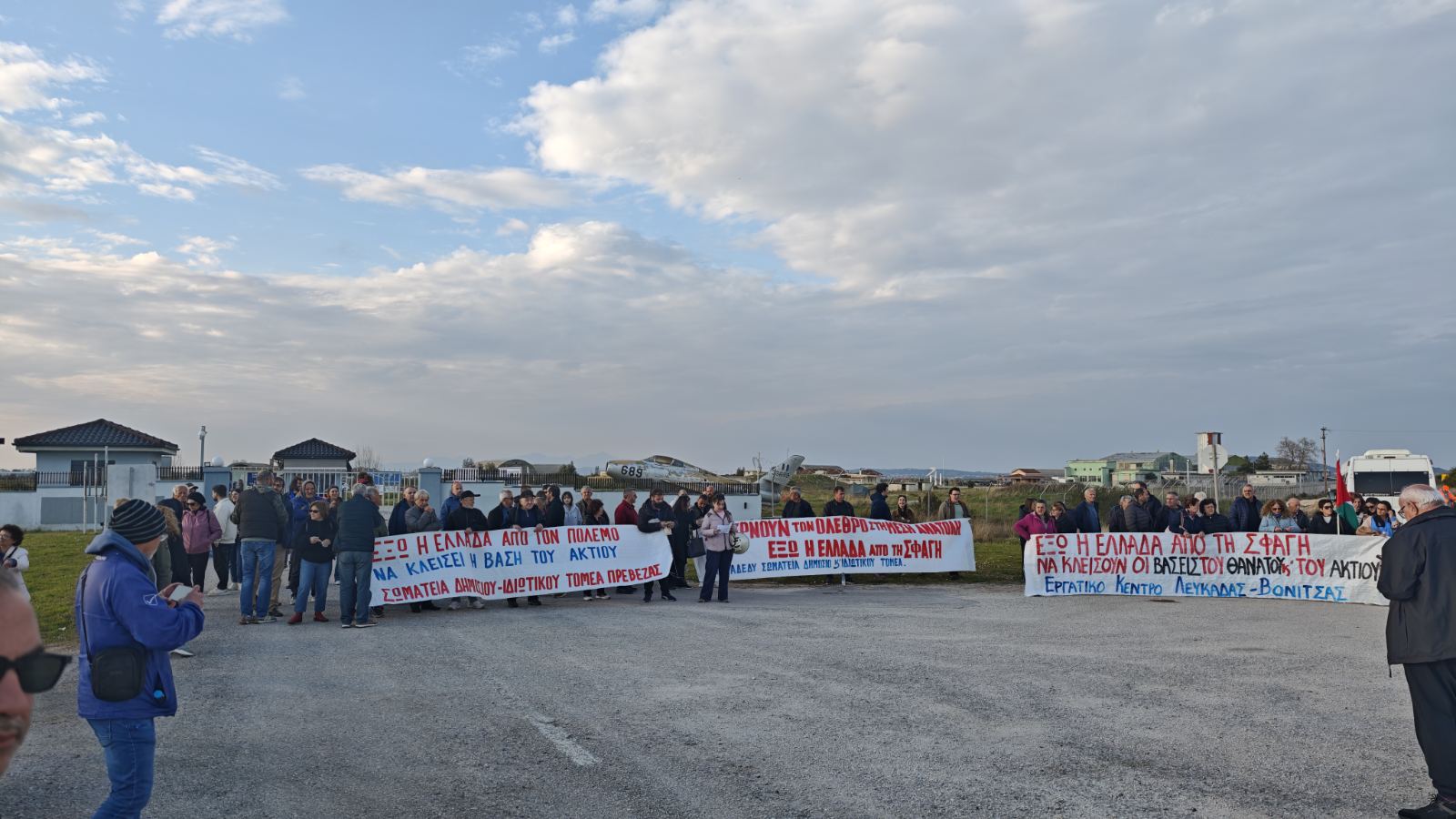 Μαχητική κινητοποίηση πραγματοποιήθηκε έξω από την πύλη της ΝΑΤΟικής βάσης του Ακτίου, από εργατικά σωματεία, μαζικούς φορείς και εργαζόμενους από την Πρέβεζα και τη Λευκάδα, που απαίτησαν να απεμπλακεί τώρα η Ελλάδα από τον ιμπεριαλιστικό πόλεμο και να κλείσουν η βάση του Ακτίου και όλες οι βάσεις του θανάτου.