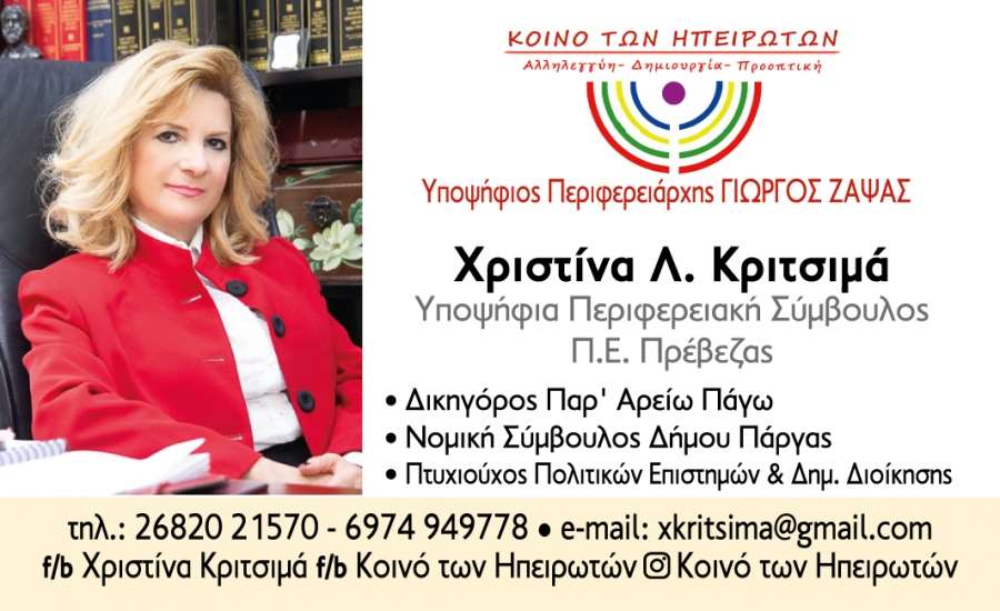 Ήρθε η ώρα η Ήπειρος να αλλάξει, να διεκδικήσει και να πάρει όσα της αξίζουν” τονίζει μεταξύ άλλων η κα Κριτσιμά.