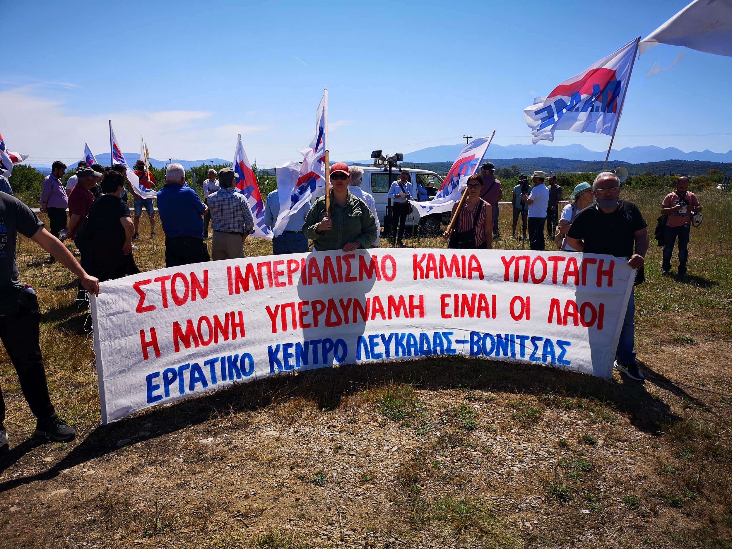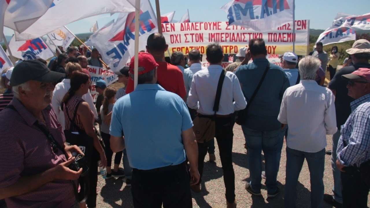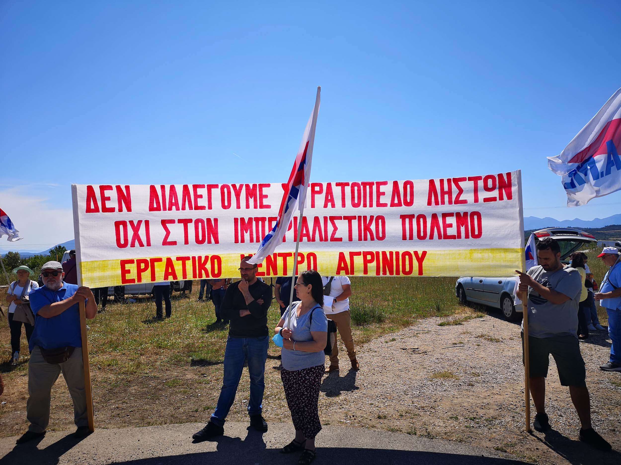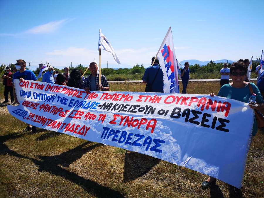 Οι συγκεντρωμένοι απαίτησαν καμιά εμπλοκή ή συμμετοχή της Ελλάδας στον ιμπεριαλιστικό πόλεμο, αναδεικνύοντας τους κινδύνους για το λαό.