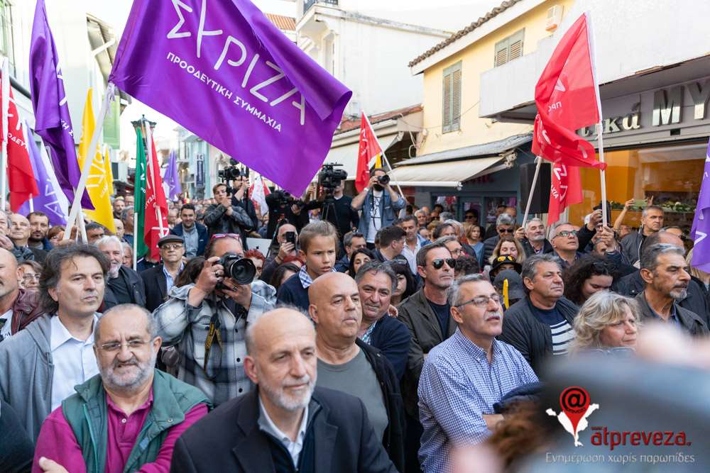 Το σύνθημα “Ο λαός δεν ξεχνά τι σημαίνει Δεξιά” ακούστηκε τις περισσότερες φορές από τους υποστηρικτές του ΣΥΡΙΖΑ, με τον κ. Τσίπρα να το αφιερώνει στις υπόλοιπες προοδευτικές δυνάμεις.